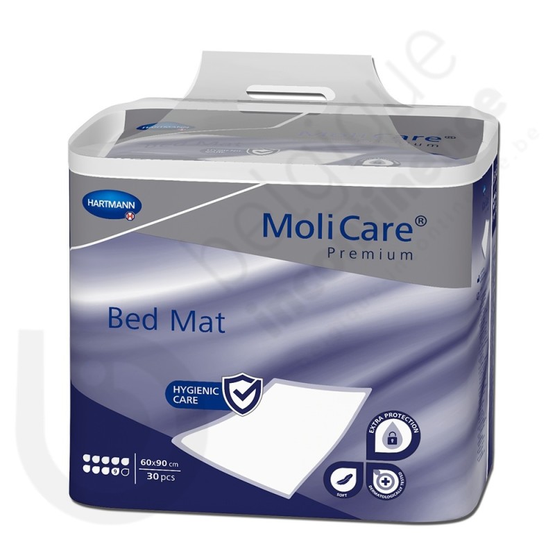 La protection Molicare Bed Mat 9 Gouttes 60 x 90 cm est une alèse jetable de la marque Hartmann qui est utilisée pour protéger les lits, les divans et les chaises.