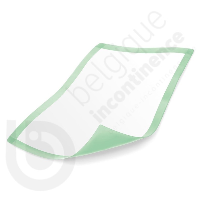 La partie absorbante de l'alèse est le côté blanc, le côté vert est donc à diriger vers le lit.
