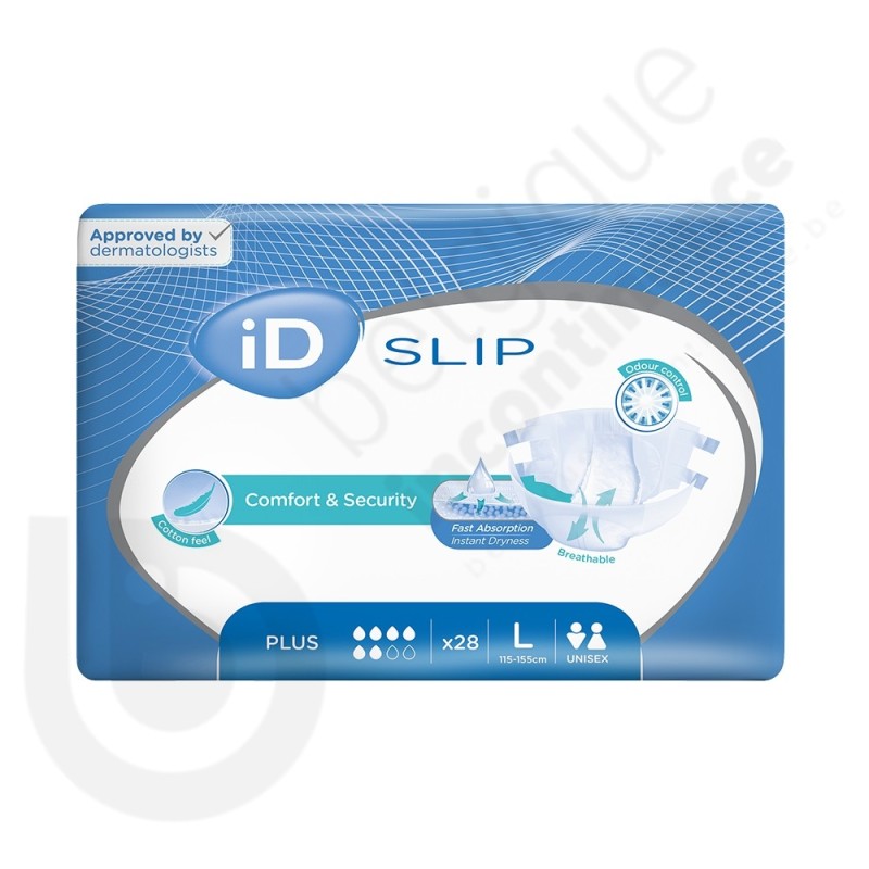 La protection iD Slip Plus est un change complet en non-tissé de la marque iD qui convient en cas d'incontinence urinaire et fécale modérée.