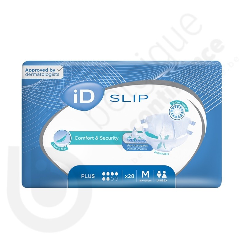 La protection iD Slip Plus est un change complet en non-tissé de la marque iD qui convient en cas d'incontinence urinaire et fécale modérée.