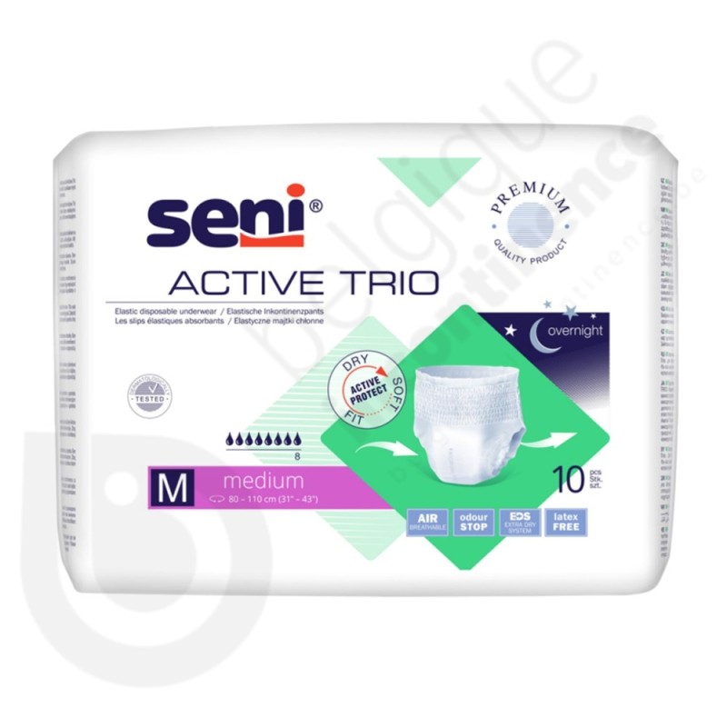 Les changes mobiles respirants Seni Active Trio sont une solution pour les personnes actives qui ont besoin de confort ainsi que de sécurité, tout en leur assurant une parfaite discrétion.