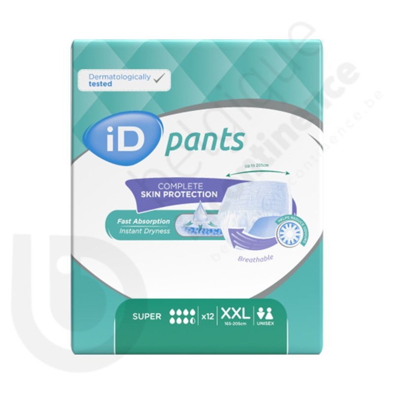 La protection iD Pants Super est un change mobile en non-tissé de la marque iD qui convient en cas d'incontinence urinaire et fécale forte.