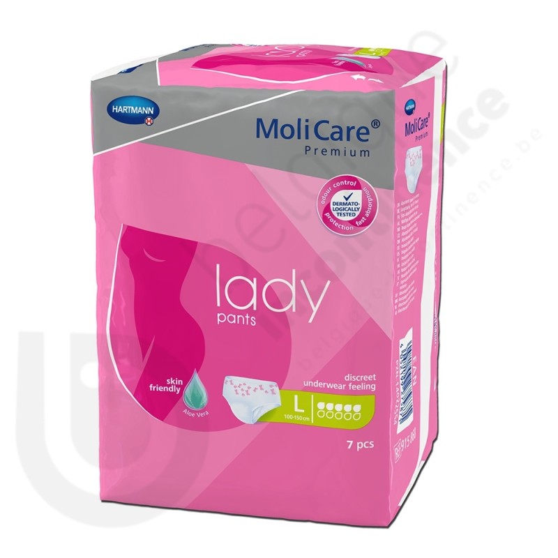 Molicare Lady Pants 5 gouttes est un slip absorbant anatomique en non-tissé de la marque Hartmann.