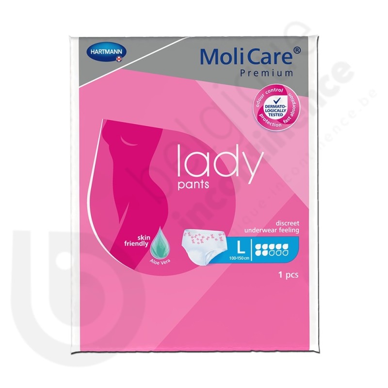 Molicare Lady Pants 7 gouttes est un slip absorbant anatomique en non-tissé de la marque Hartmann.