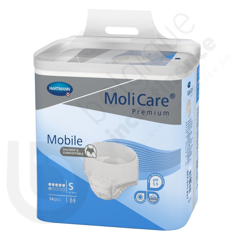 La protection Molicare Mobile 6 Gouttes est un change mobile en non-tissé de la marque Hartmann qui convient en cas d'incontinence urinaire ou fécale moyenne.