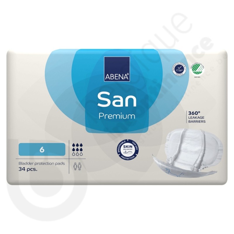 Abena San 6 est une couche anatomique en non-tissé de la marque Abena.