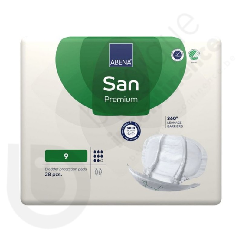 Abena San 9 est une couche anatomique en non-tissé de la marque Abena.
