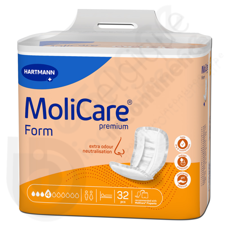 La protection Molicare Form 4 Gouttes est une couche anatomique en non-tissé de la marque Hartmann qui convient en cas d'incontinence urinaire ou fécale modérée.
