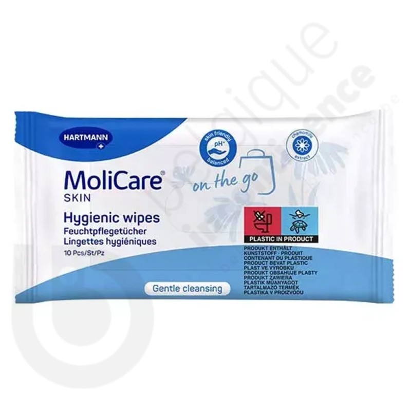 Les Molicare Skin Lingettes Hygiéniques sont prévues pour une hygiène corporelle. Elles sont imprégnées de lotion nettoyante avec un parfum d'extrait de camomille. Elles apportent une sécurité au quotidien où que vous soyez. Elles peuvent être utilisées pour l'hygiène intime.