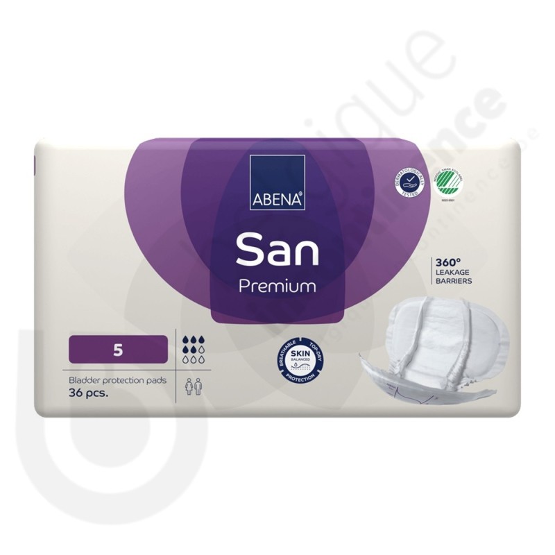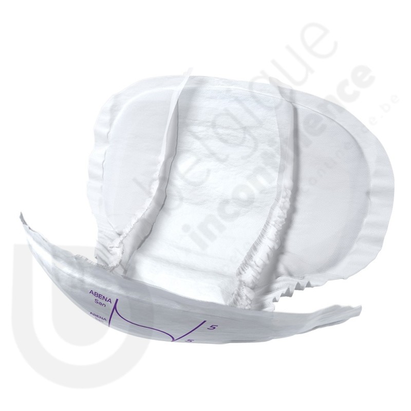Abena San 5 is een anatomische inlegger uit vliesstof van het merk Abena.