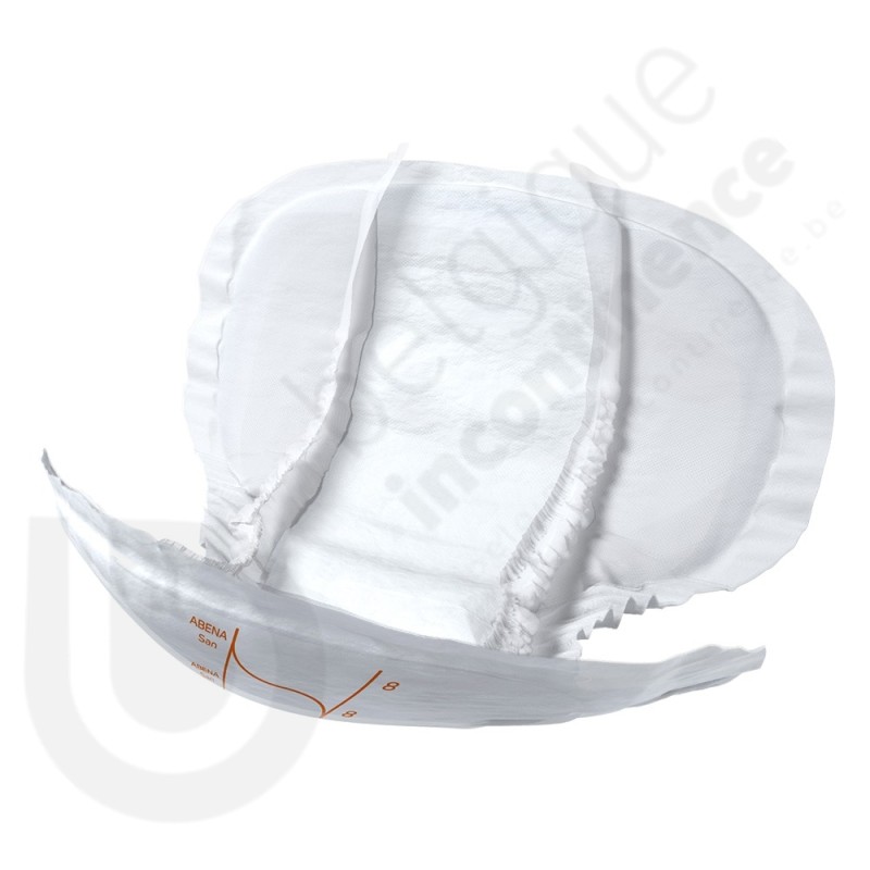 Abena San 8 is een anatomische inlegger uit vliesstof van het merk Abena.