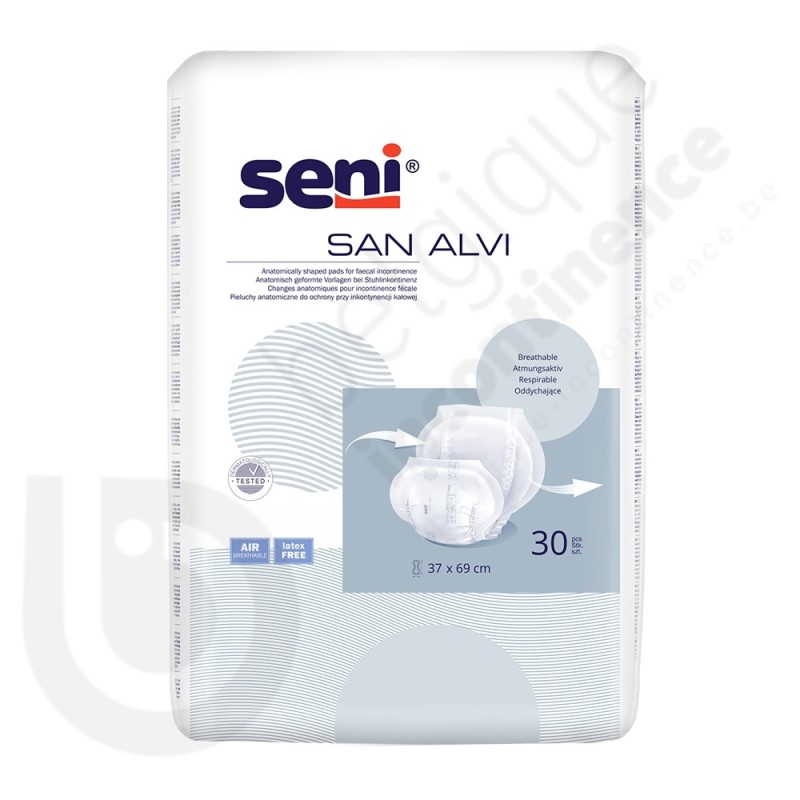 De Seni San Alvi bescherming is een anatomische non-woven laag van het merk Seni die ideaal is voor fecale incontinentie, ook voor mensen met katheters.