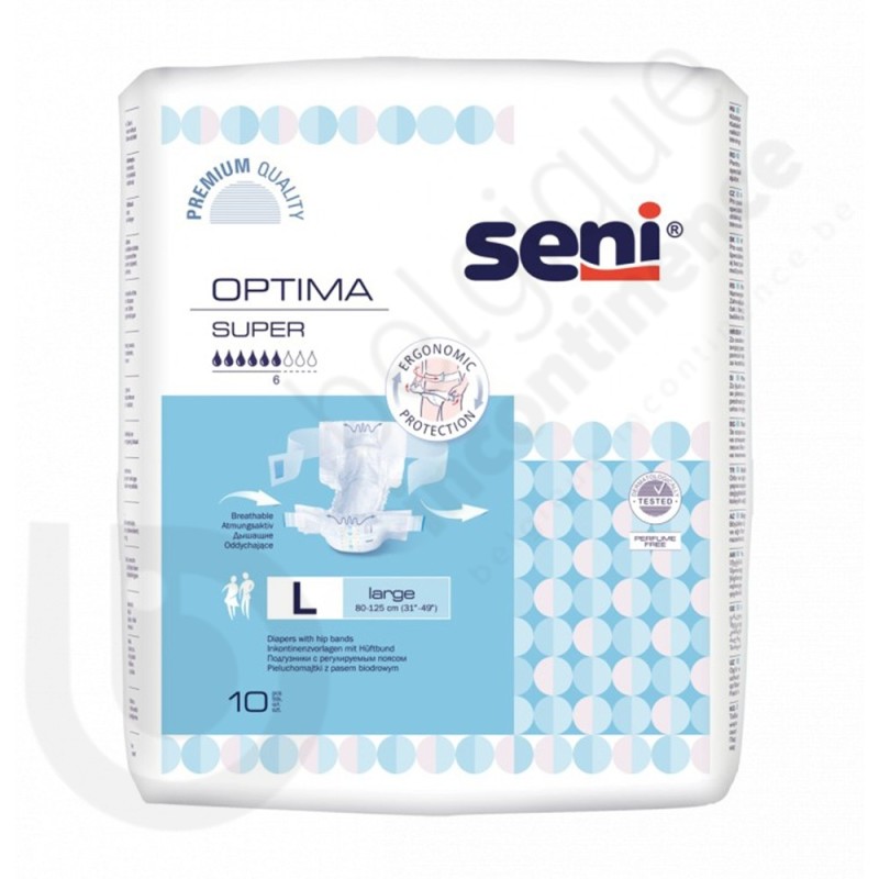 Seni Optima Super is een incontinentie slip met heupband uit vliesstof van het merk Seni.