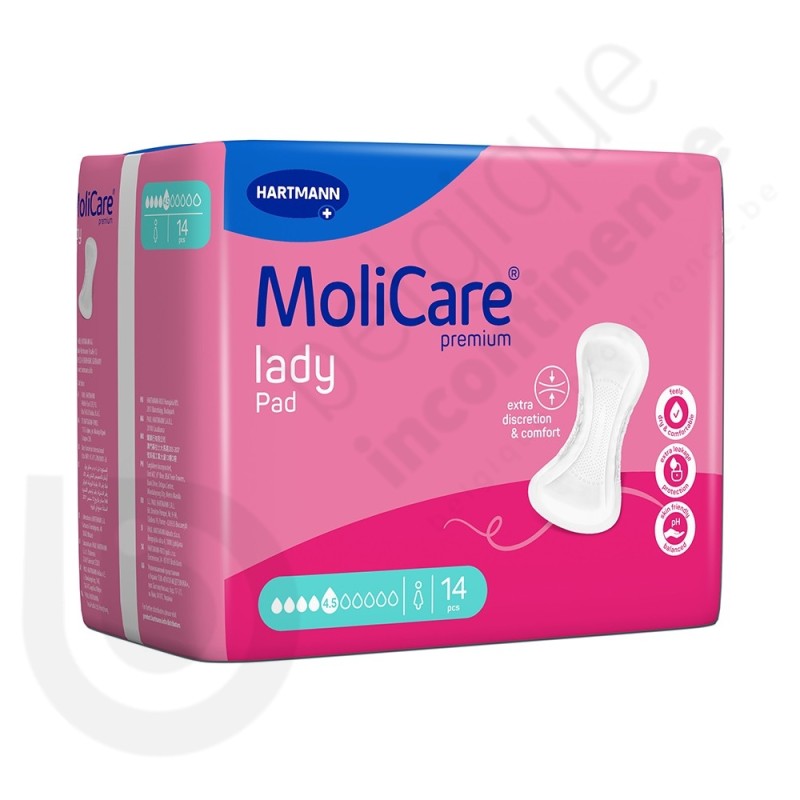 Molicare Lady Pad 4,5 Druppels is een anatomische inlegger uit vliesstof van het merk Hartmann.