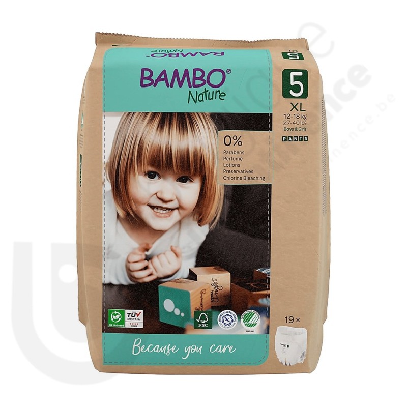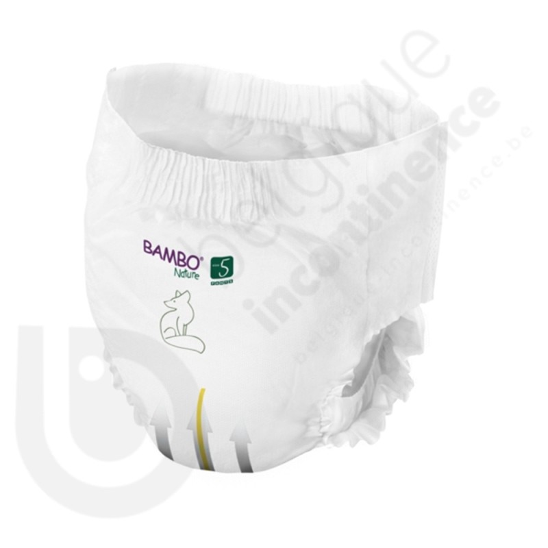 Bambo Nature Pants 5 XL is een luierbroekje uit vliesstof van het merk Bambo voor kinderen tussen 12 en 18 kg.