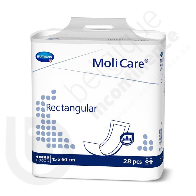 Molicare Rectangular 5 Druppels 15 x 60 cm is een doorlaatbaar rechte inlegger uit vliesstof van het merk Hartmann gebruikt als aanvullend absorptiemiddel, d.w.z. dat het niet op zich gebruikt kan worden. Het moet in een andere bescherming worden geplaatst om het absorptievermogen te verhogen.