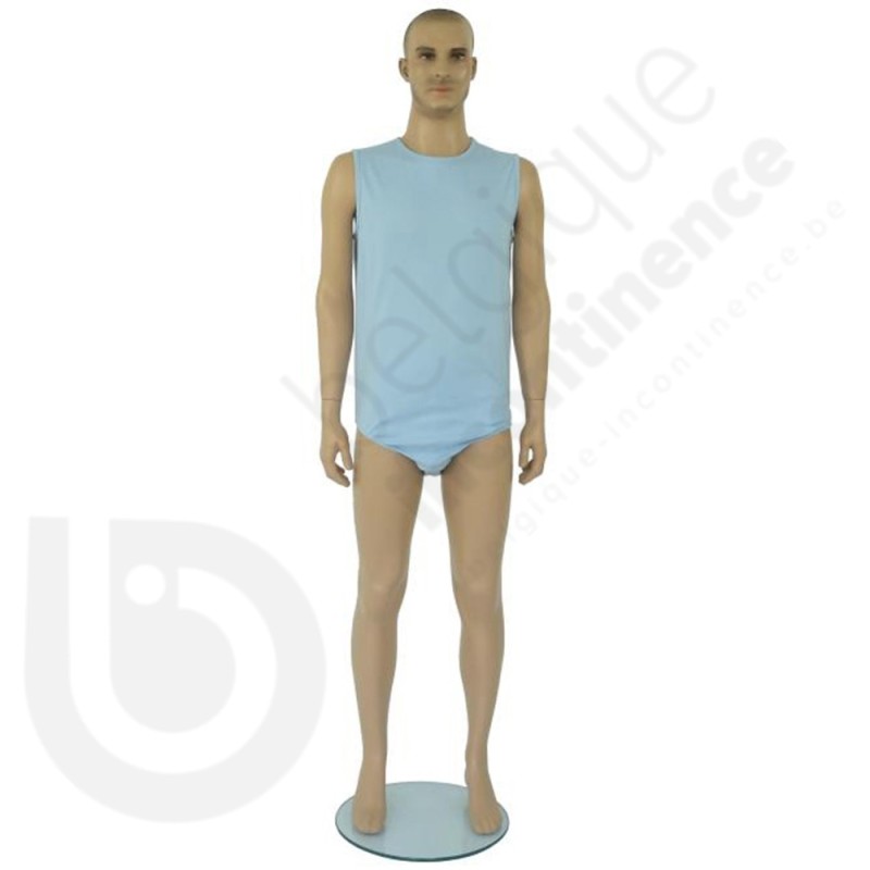De Mouwloze Blauw Body met Drukknopen kan voor bedlegerige, incontinente, gedesoriënteerde of afhankelijke personen eenvoudig overdag of 's nachts aangebracht worden.