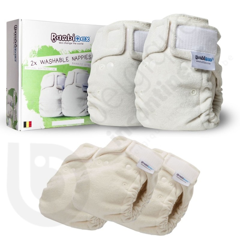 Voor u de wasbare Bambinex-luiers gebruikt, MOET u ze eerst minstens drie keer wassen en drogen. De nieuwe luiers zijn nog bedekt met de resten van de was en oliën waarmee ze tijdens het vervaardigingsproces behandeld werden. Die moeten eerst verwijderd worden om de poriën van de vezels open te zetten en een maximaal absorberend vermogen te bereiken.